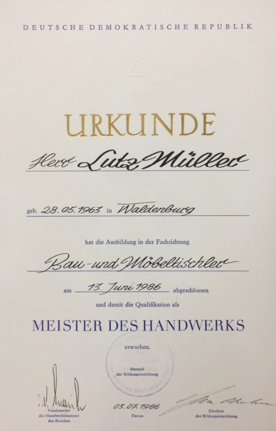 1996 trat mit Lutz Müller die dritte Generation in die Verantwortung. Mit visionärem Blick und unternehmerischem Gespür formte er die Firma Schritt für Schritt vom ehemaligen Möbelproduzenten zum modernen, leistungsstarken Baudienstleistungsunternehmen. Neue Geschäftsfelder wurden erschlossen, Abläufe professionalisiert und das Unternehmen auf zukunftsfähige Beine gestellt.
